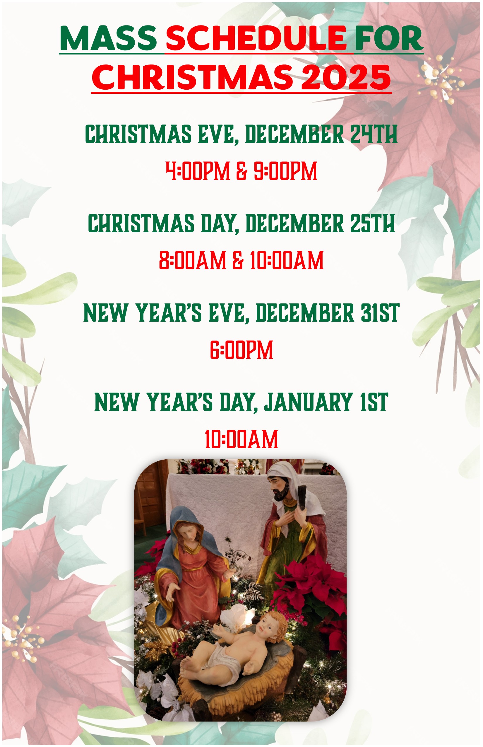 | 7:30, 9 a.m.; 12:00 p.m., (during the summer: 7:30, 9, 11 a.m.); online 9 a.m. |